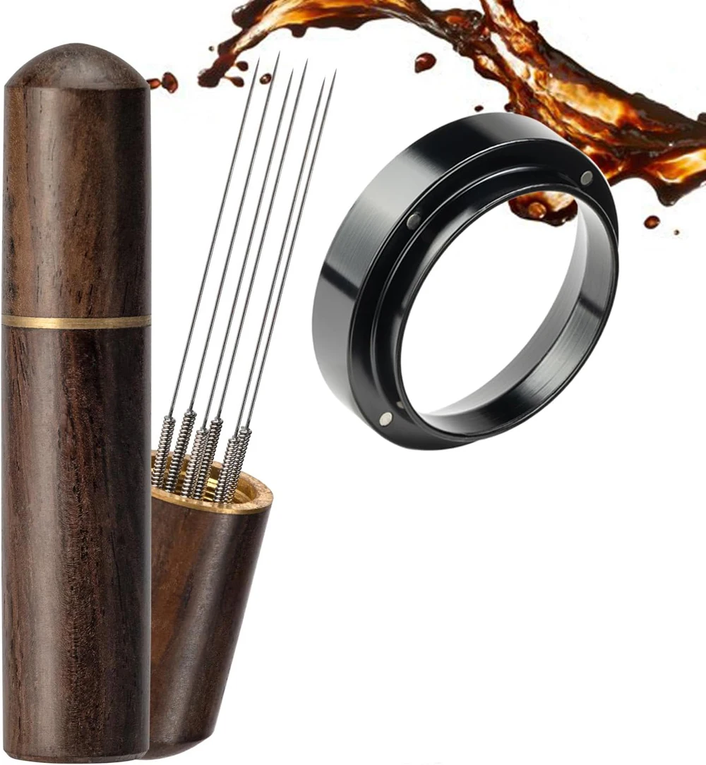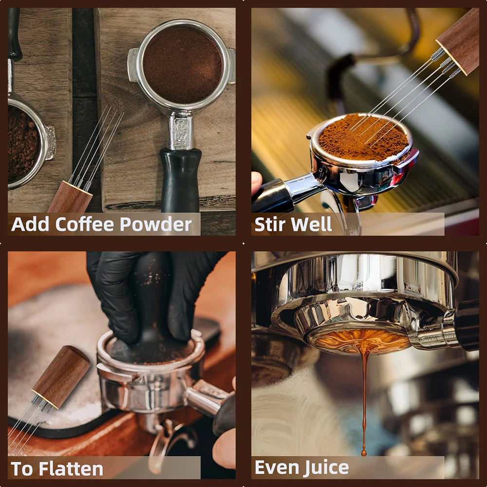 إبرة القهوة النمام اسبريسو الموزع الفولاذ المقاوم للصدأ القهوة النمام العبث WDT أداة مع مقبض خشبي مقهى باريستا لوازم